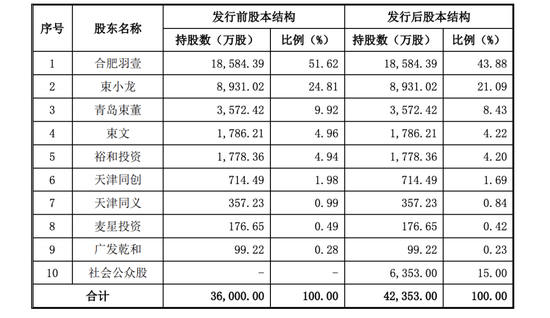招股书显示,IPO前,“合肥羽壹”占公司股份总数的51.62%,为公司控股股东,而这家公司也是由束从轩子女——束小龙、束文兄妹持股;加华资本通过裕和投资持股4.94%。