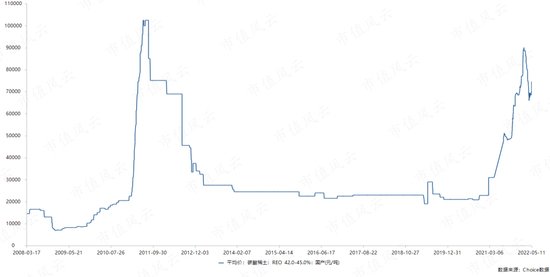 而根据上海有色网数据显示,2022年1-4月碳酸稀土(REO42-45%)现货均价为7.83万元/吨,比去年全年均价上涨90%左右。