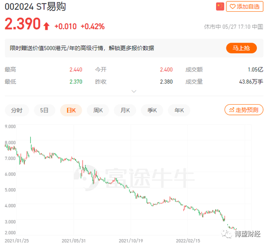 因最近三个会计年度扣非前后净利润孰低者均为负值,且持续经营能力存在不确定性,股票已于今年5月6日开盘被实施其他风险警示,变成“ST易购”,当日随即跌停报收3.07元/股。