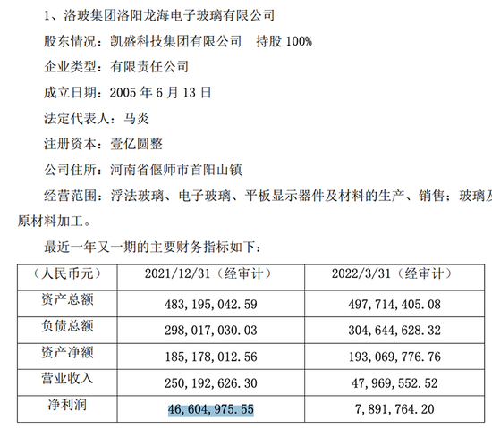 其中,龙海玻璃业绩不俗。公告显示,龙海玻璃2021年营业收入约为2.5亿元,净利润约为4660万元。