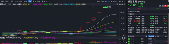 比如钱江水利,5月24日到5月30日,连续5个涨停板,都是封死了的,一般投资者稍微贪心一点,都不会走。5月31日,盘中放量换手,尾盘涨停,收盘没有封死,但最终还是大涨了近8%。如果这个时候还没走,就根本没有逃跑的机会了,昨天和今天,连续两个一字板跌停,根本卖不掉。