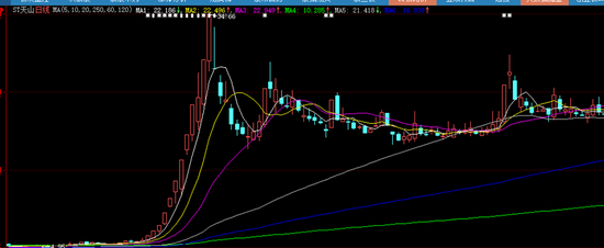 再举个例子,2020年最妖的妖股是天山生物,当时正好遇到创业板高注册制,涨跌幅限制从10%扩大到20%。天山生物先是连续3个10CM涨停板,然后连续6个20CM涨停板,一共8个20CM涨停之后才见顶。其股价也从最低的4.95元炒到了34.66元。这个过程,你每天都有机会上车,也有机会下车。但是,一旦你不小心,错过了最后一个站,或者在最高点买入,那么基本上就再也没有机会了。如今,两年时间过去了,天山生物已经变成了“天山”,股价自身6元多。
