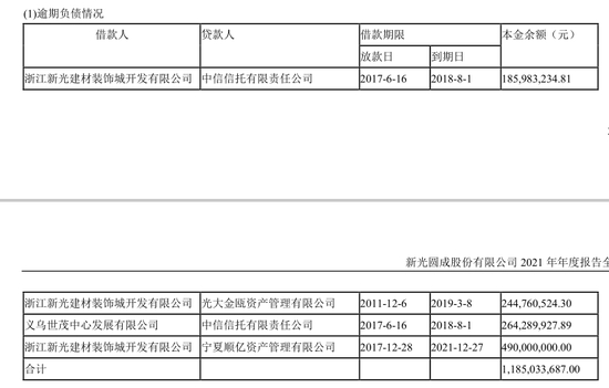截至2021年12月31日,*ST新光逾期负债本金11.85亿元(包括4.9亿元的短期借款),逾期利息及罚息4.99亿元,逾期本息累计16.84亿元。