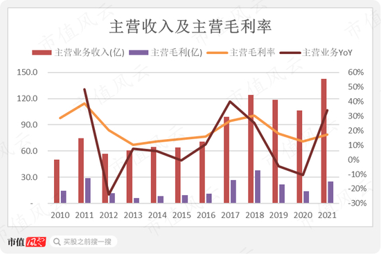 从营收看,比较明显的是公司在2013-16年,2018-20年间有两个营收规模平台期,期间看上去很稳。