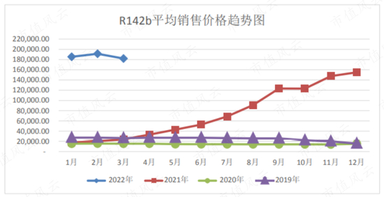 而R142b在今年一季度依旧延续了强势,超过18万元/吨。