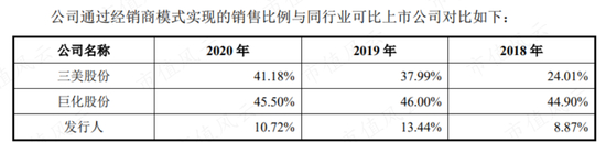 与之对应的销售模式就是与三美股份和巨化股份相比,公司产品以直销为主,经销商模式明显偏低。