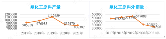 公司表示,受供需格局改善,氟化工原料产品价格同比上涨81%,但是不巧的是,公司氟化工原料外销量过去两年持续大幅下降,2019-21年间降幅依次为43.5%、19.7%。