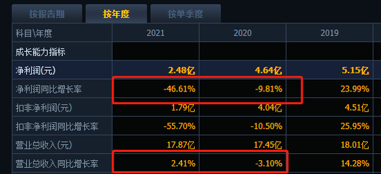 然而,丸美股份上市就业绩变脸,2020年和2021年,营收增长基本停滞,净利润连续下滑。2022年一季度,丸美股份营收净利润双降。