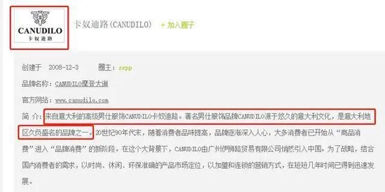 一年后的2000年9月,卡奴迪路漂洋过海,在意大利注册商标,自此镀金穿上了“洋装”,被宣传为意大利品牌。