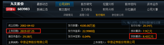 2019年7月,孙怀庆带领丸美股份上市,发行价20.54元,实际募资8.42亿元。
