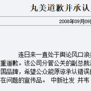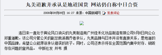 2008年,丸美在遭遇打假后致歉,承认自己是国产的。致歉声明中称,“丸美品牌与日本并没有直接关系,是地道的中国品牌,希望公众能原谅承认错误的孩子。”