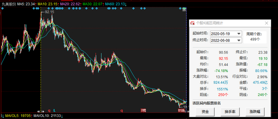 业绩表现不佳,丸美股份股价冲高回落,2020年5月以来,连续两年震荡下跌,跌幅在70%以上,总市值蒸发270亿元。