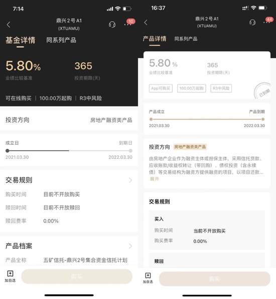 不过据多名投资者反映,该产品一开始在招行App上线时界面描述为基金,今年5月初调整了界面信息,增加了对于“房地产融资类产品”的解释,且删去“基金”字样。