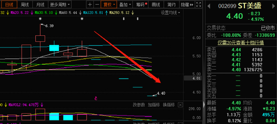 6月2日,美盛文化刚刚公告被ST,吃到五个跌停。