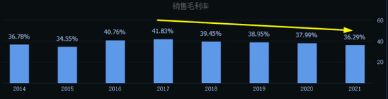 随着人力成本的不断攀升,药明康德毛利率水平已经连续4年出现同比下滑。数据显示,2017年-2021年,药明康德综合毛利率已经由41.83%下滑至36.28%,4年内毛利率下滑了5.5个百分点,盈利能力逐年下滑迹象明显。