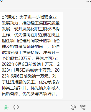 就在广西建工员工们静盼工资消息时,一个来自公司内部的员工持股计划,又加剧了员工的愤怒和不解。