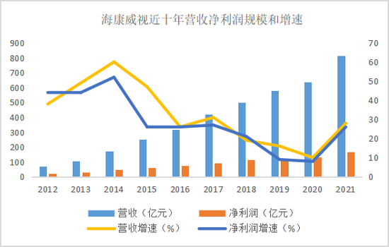 不过,此前被列入实体清单后,海康威视的发展似乎未受到太大影响。虽然2020年海康威视营收增速10.14%,为上市以来最低值。但2021年,公司一改往年增速下滑态势,逆势增长,营收、归母净利润同比增速均超过20%,创出了近四年来的新高。