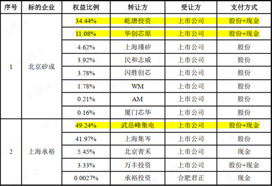 其次,参与业绩承诺的交易对手只有屹唐投资、华创芯原和武岳峰集电三家,合计持股比例仅占北京矽成总股数量的65%,且只有三年累计净利润低于承诺金额的85%时才触发补偿义务。