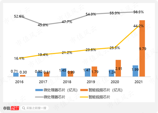 序号1,MPU芯片项目是在北京君正现有微处理器芯片基础上进行的升级改造。但客观来说,2021年之前,北京君正微处理器芯片业务包括视频芯片业务竞争力究竟如何,其实很明白。
