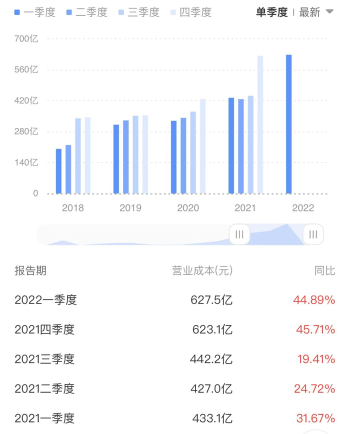 附图中远海控营业成本季度变化