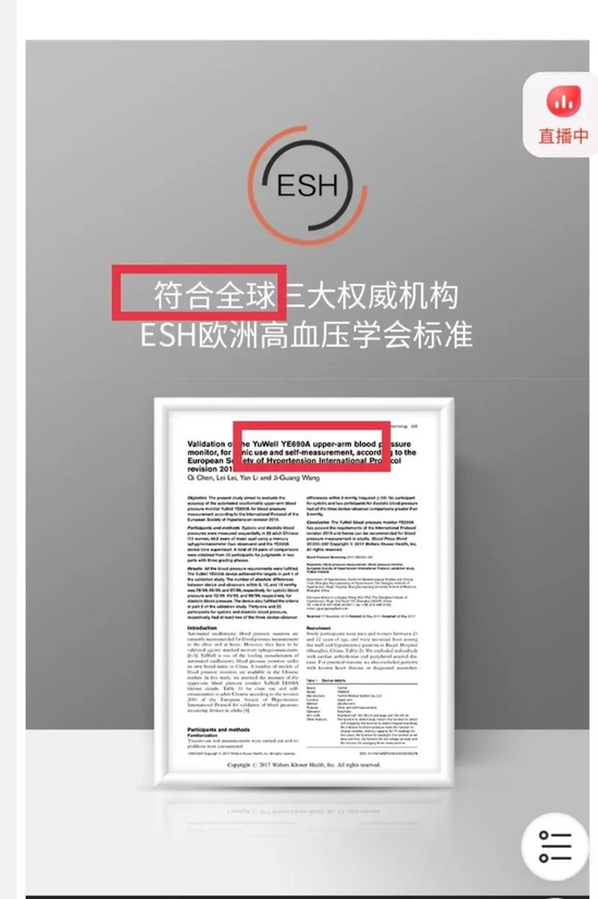 另外,鱼跃电子血压计还存在涉嫌虚假宣传的情况。新浪科技注意到,在电商平台上,鱼跃医疗将通过国际机构认证的证书使用在未通过认证的产品上进行宣传,涉嫌误导用户。