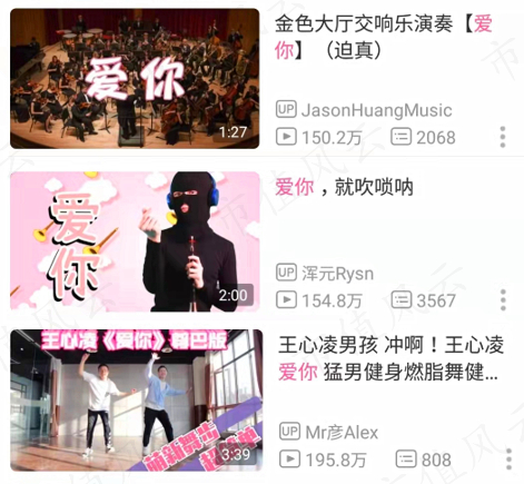 除了原创内容外,大量魔改版本的《爱你》开始以病毒传播的方式迅速蔓延至全站,场面一度失控。