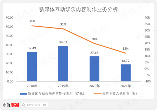 从2019年开始,该业务的收入就持续下滑:从2019年的39.2亿元一路下滑至2021年的18.77亿元,占营业收入的比重也从31%不断下降至12%。
