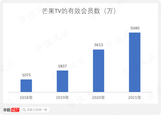 运营数据方面,芒果TV的有效会员数从2018年的1075万增长至2021年的5040万。