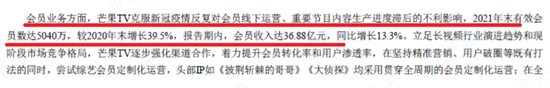 公司给出的解释是,反复发生的疫情严重影响了公司的会员线下运营业务,一些重要的综艺节目的生产进度也被延后。