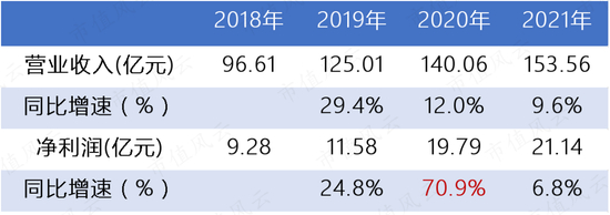 净利润的绝对规模也最终在2021年成功迈上了20亿元的大关。