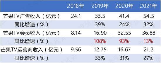 显然,造成2021年芒果TV收入增速下滑的主要原因是会员收入增速下滑。