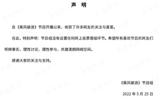 最后,公司被迫紧急发布声明,说《浪姐3》没有设置任何网上投票晋级环节。