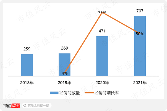 在禾川科技的呵护下,2020、2021年,其经销商数量快速增长,至2021年末,经销商达707家。