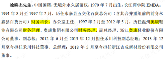 徐晓杰1997年加入奥康国际(603001.SH),在奥康国际2012年A股上市后不到1个月就加入了创立没多久的禾川科技。