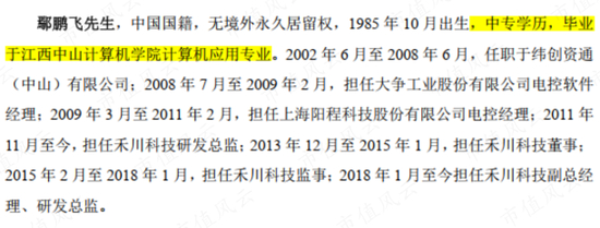这意味着对禾川科技来说,在伺服系统及PLC领域,鄢鹏飞的经验和学历已经够用。