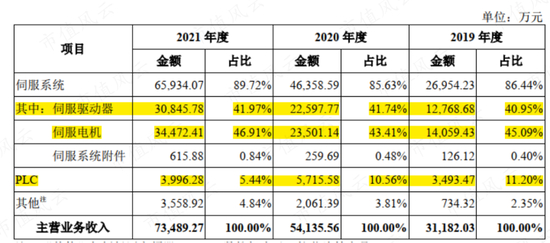 总体来说,包括伺服驱动器和伺服电机在内的伺服系统业务是禾川科技目前主要收入来源,过去三年营收贡献分别为86.44%、85.63%和89.72%。