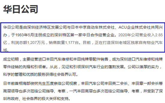 特力A在官网中对汽车板块的介绍,提到华日公司