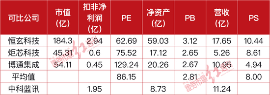 根据业务相似度,选取恒玄科技、炬芯科技、博通集成作为可比公司,用它们作为估值参考。选用PE、PB、PS三种相对估值法;市值选取2022年6月17日收盘数据,财务数据选取2021年年报数据。