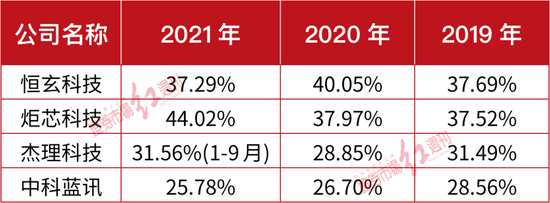 表1 中科蓝讯与同行公司毛利率对比