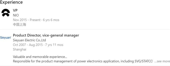 根据陆荣华的LinkedIn资料,他自2016年3月起为蔚来工作,目前是蔚来的主要子公司之一 “上海蔚来”的电池运营总监。