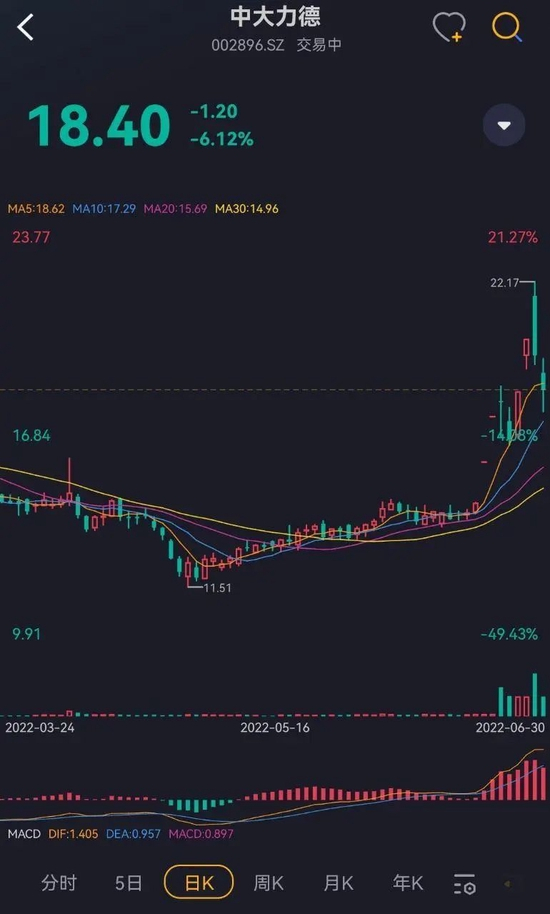其中减速器代表性企业中大力德(002896.SZ),从6月21日到6月29日,公司在七个交易日轰出四个涨停板。