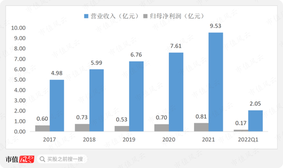 公司营收增速不高,2021年营收增速出现回暖的迹象,归母净利润存在一定的波动。2022年一季度营收基本跟同期持平,归母净利润同比下滑5.65%。