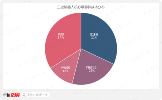 以工业机器人为例,控制器、伺服电机和减速器其核心零部件成本占总成本接近70%,当中减速器成本占比大概为32%,伺服电机和控制器占比分别为22%和12%,目前国产品牌和外资品牌存在一定差异。