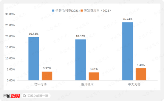 对比行业内可比公司,中大力德的研发费用率和毛利率均处于相对较高水平。