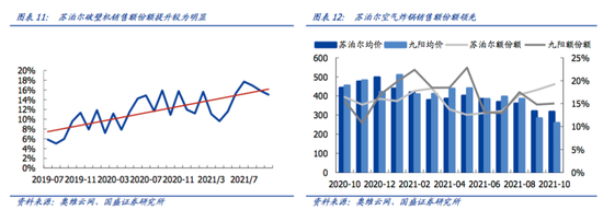 例如公司弱项产品破壁机,市场份额从2019年的5%左右,提升至2021年的15%,成为行业第二;空气炸锅领域,苏泊尔旗舰店推出炸锅品类达20余种,2021年4月线上空气炸锅市场销售份额即达到17.29%,位列行业第一。