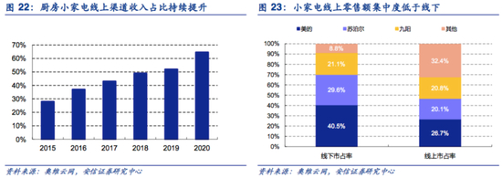 从上图可见,厨房小家电线上渠道收入占比常年保持提升态势,且2020年提升幅度明显。
