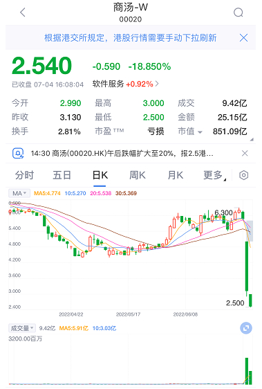 商汤科技再次大跌18%,市值跌穿D轮!D轮、D+轮、基石投资者或亏损