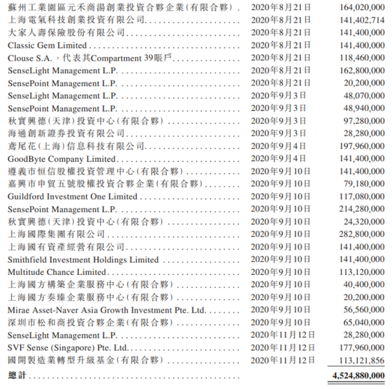 结合各轮融资数据,D轮投资方包括商汤科技Sensetime、软银中国,东方明珠旗下产业投资基金、PAC、前海梧桐并购基金、朗盛资本等。其持有优先股数为4,524,880,000,共计融资16.00亿美元(大约125.28亿港元),目前其持有者或已亏损总计1.52亿美元(大约11.9亿港元)。
