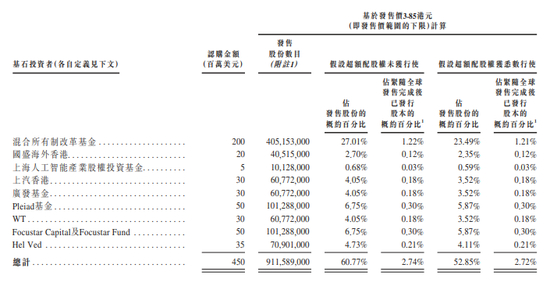根据招股书,公司上市前累计获得12轮融资,投资者持股223.62亿股,基石投资者持股10.33亿股。