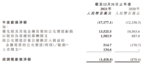 但公司一直亏损,2018年、2019年、2020年及2021年,商汤科技分别亏损人民币34.33亿元、49.68亿元、121.58亿元、171.7亿元。